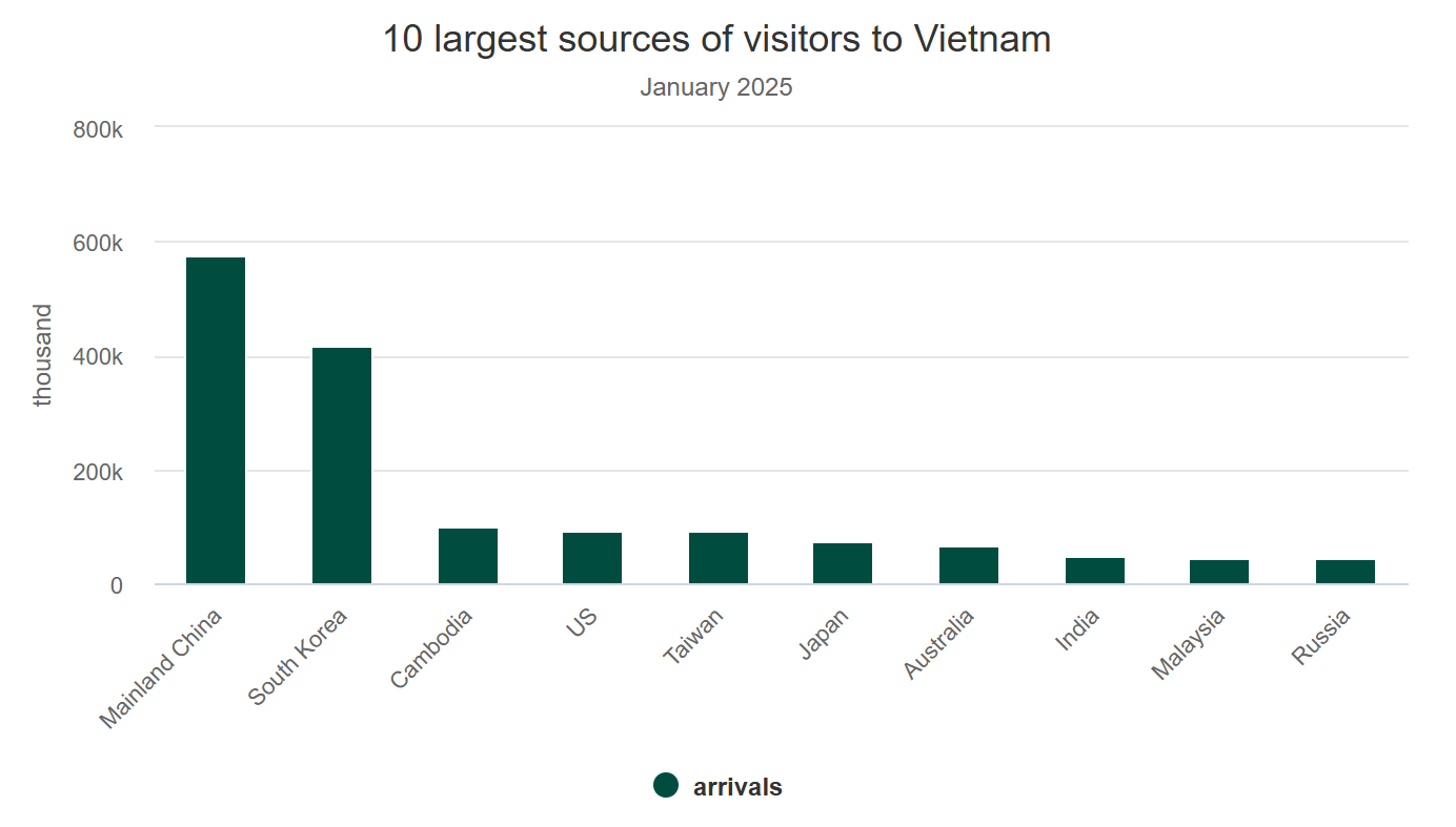 Vietnam welcomed 2.07 million foreign tourists in January, a 36.9% year-on-year increase, with China reclaiming its position as the country's largest source of visitors.
