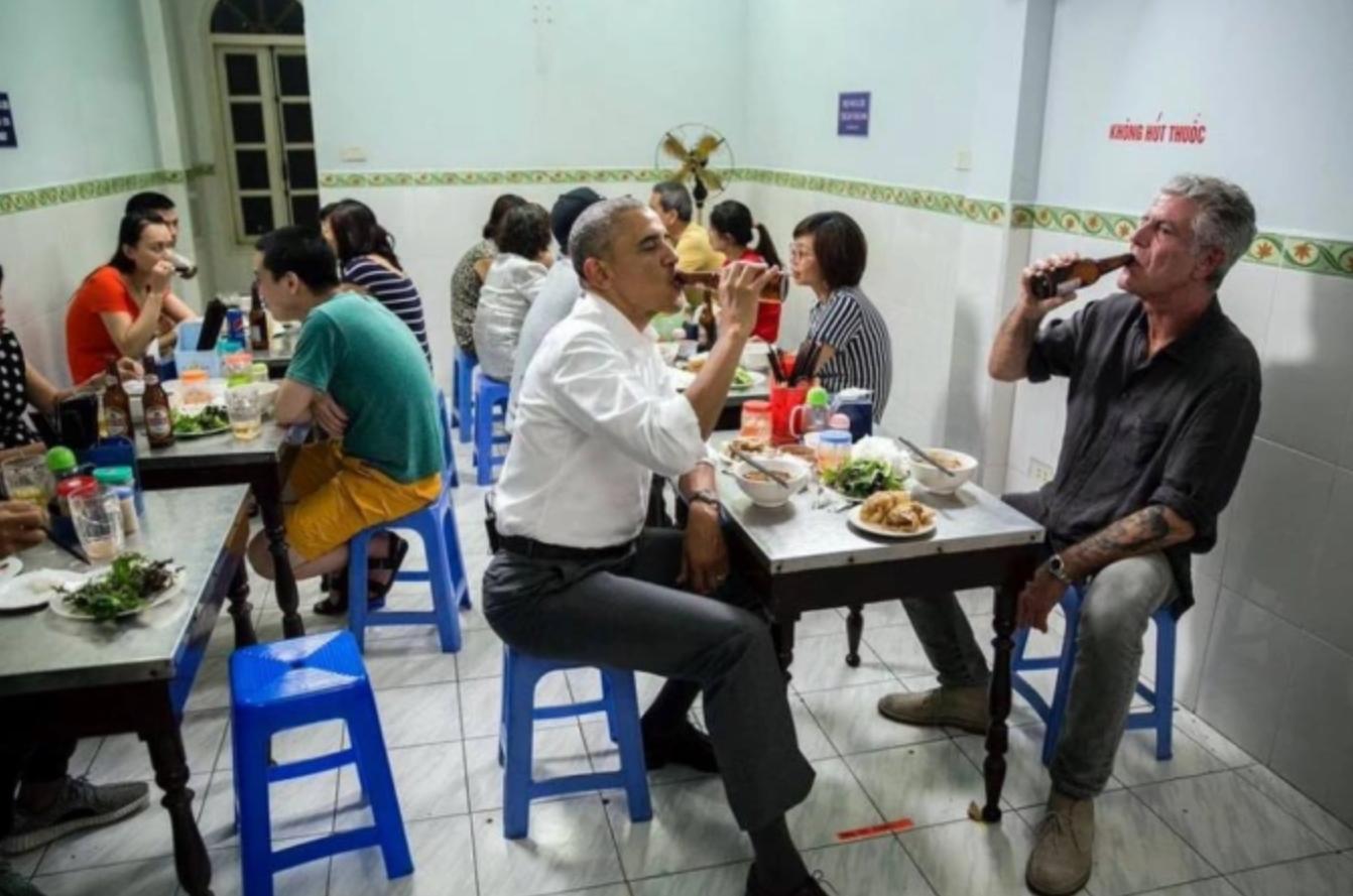 U.S. President Barack Obama and Anthony Bourdain at Bun chan Huong Lien in 2016. Photo by Facebook/Anthony Bourdain