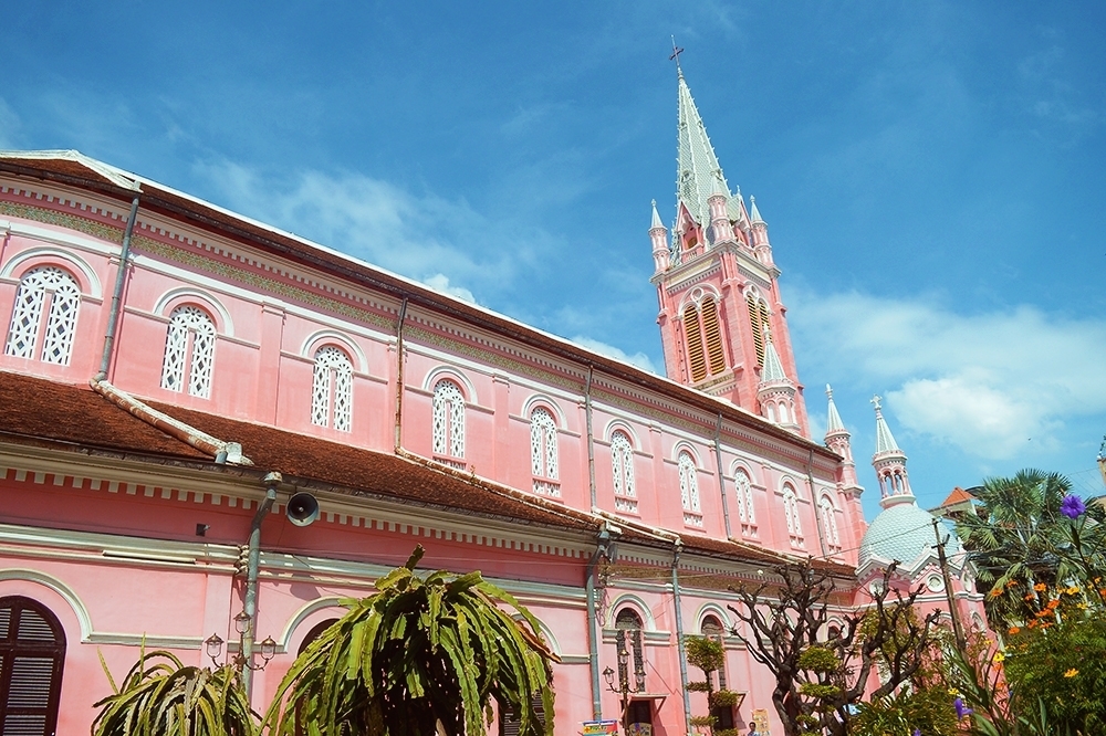 Known for its striking pastel facade, Tan Dinh Church, also known as The Pink Church, at 289 Hai Ba Trung Street, District 3, is another architectural gem from the French colonial era. Built in 1876, it is one of the oldest churches in HCMC and stands out for its unique Romanesque, Gothic, and Baroque influences.