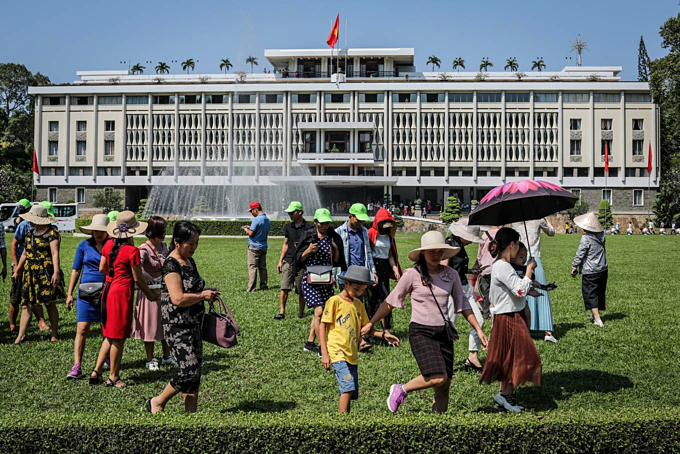 Visitors enjoying the sun at the Reunification Palace in HCMC. Photo by Vnexpress/Thanh Nguyen