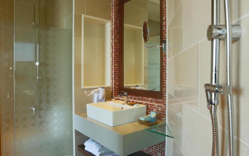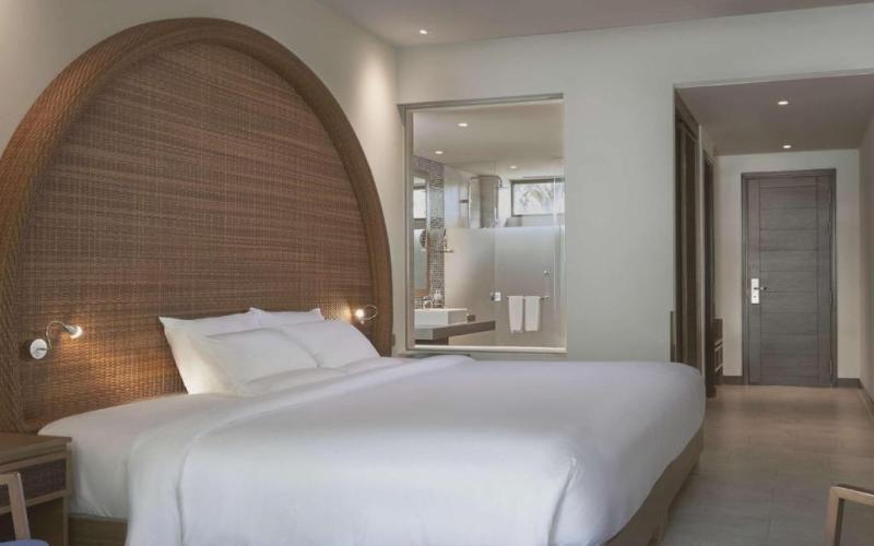 The resort offers a variety of spacious rooms, suites, and villas, each designed with modern decor and equipped with amenities like private balconies, flat-screen TVs, and minibars.