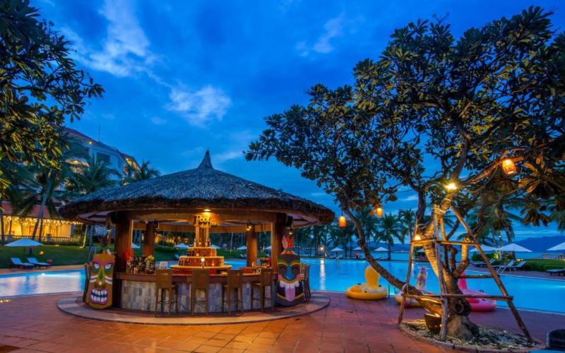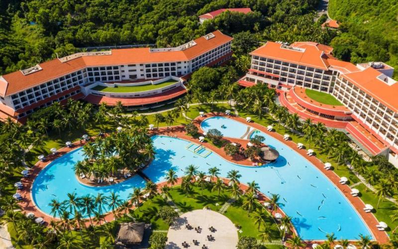 Vinpearl Resort Nha Trang is a luxurious 5-star resort located on Hon Tre Island in Nha Trang, Vietnam. The resort features Indochine-style architecture with bright red tiled roofs, tropical gardens, and a private white-sand beach.