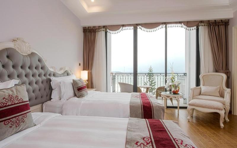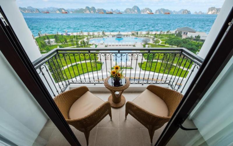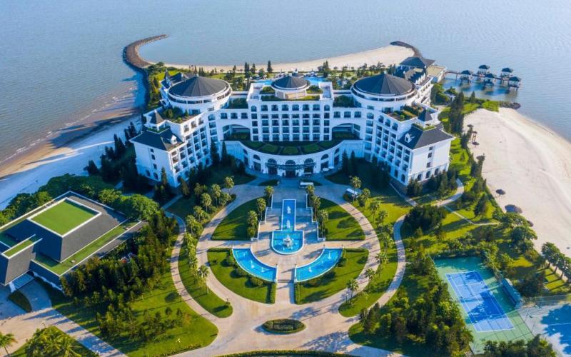 Vinpearl Resort & Spa is immersed in the enchanting beauty of Ha Long Bay Escape from everyday life and indulge in luxury at Vinpearl Resort & Spa Ha Long, just a 5-minute speedboat ride from the shores of Ha Long Bay. Surrounded by majestic limestone mountains, this luxury 5-star resort is located on a private island and offers three private beaches, lush gardens, large outdoor and indoor swimming pools and a relaxing spa. With its unique island setting, exceptional amenities, and commitment to service excellence, Vinpearl Resort & Spa Ha Long offers an unparalleled experience for travelers seeking luxury and tranquility in one of Vietnam's most iconic destinations.