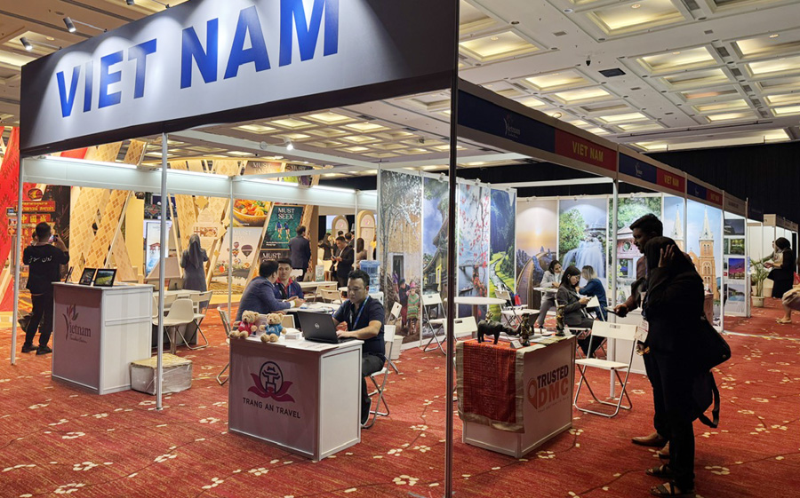 面积达54平方米的博览会展位是以包括Hanoitourist在内的众多越南旅游企业参与的社会化为基础,由越南国家旅游厅主管建设的开放空间。 展位上展示并介绍了越南国家旅游局和企业推广越南旅游各胜地的许多形象。 特别是,河内旅游公司带来了丰富的出版物和资料,介绍河内文化遗产、河内古城和美食旅游旅游等,特别是河内首都和越南的特定旅游产品。 越南国家旅游局还组织了与企业和伙伴见面活动,在博览会上介绍越南旅游目的地、政策、扶持政策和旅游合作。