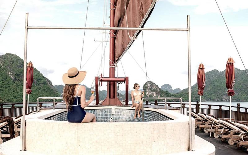 精致设计: 姜河游轮以其令人惊叹的当地越南遗产主题和精致的现代装饰而自豪。 这艘优雅的设计船在公共空间和套房内部展示了当地的艺术、传统和文物。
