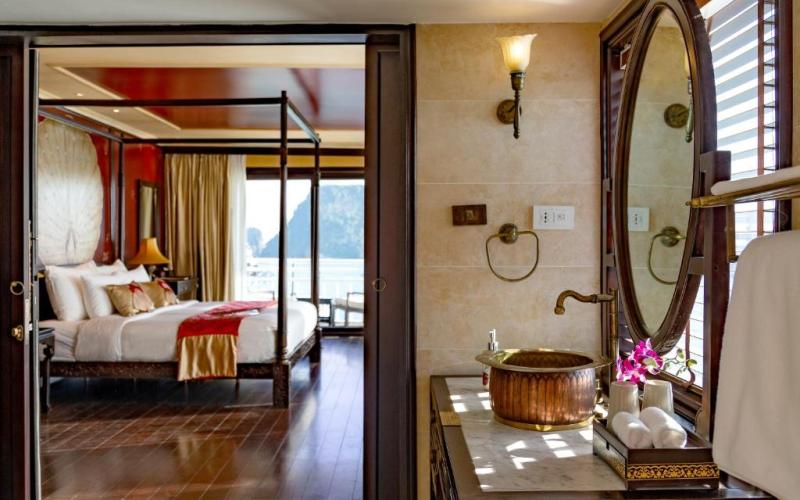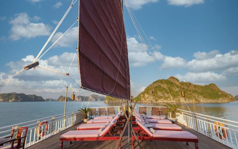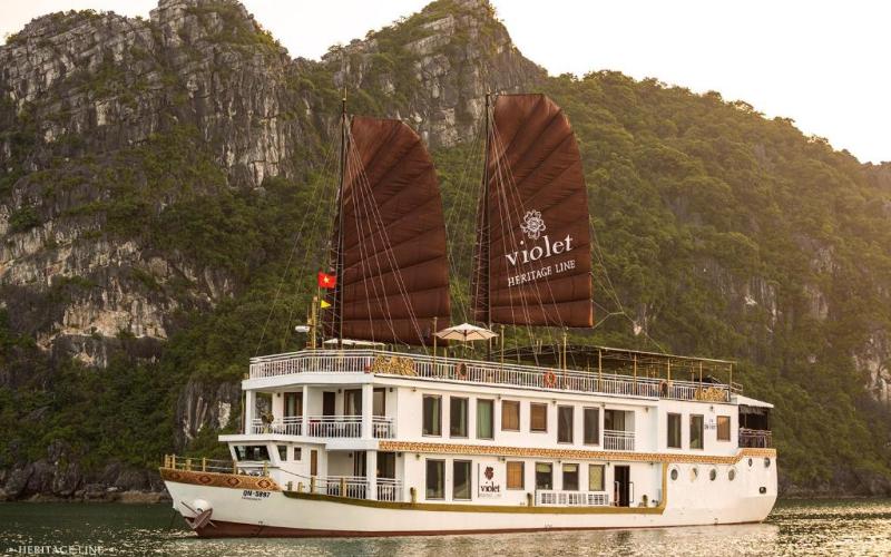 乘坐遗产线的紫罗兰号游轮,开启一段独家旅程,探索下龙湾令人着迷的风景。 这艘受法印设计启发的精品豪华游轮,仅提供六间独特主题的套房,每间套房均设有私人阳台和落地窗,可尽享令人叹为观止的海湾景色。