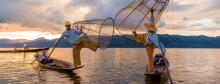 早晨酒店早餐后于指定时间前往机场,乘机飞往茵莱湖,抵达后乘坐当地特色游船游览风光旖旎的茵莱湖。茵莱湖是缅甸第二大湖,三面环山,水质清澈,湖底水草清晰可见,湖水的颜色随着每天日出日落而发生变化。当地茵达族人的村寨依湖而建,高脚屋、学校、商店等各种生活设施均伫立水中,当地人的饮食起居均依湖而生,交通往来全依靠船只,是名副其实的水上村寨。当地人特有的划船方式是站在船尾,手脚并用的划船。