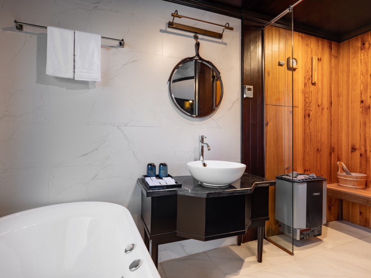 船上只有 22 间豪华客舱,最小的客舱面积为 28 平方米,这趟游轮将为您带来海湾的最佳体验。得益于其建筑风格,La Casta Cruise 的所有客舱均享有全海景,并设有私人阳台,让您可以一览海湾的全景。有 4 种房型可供选择,即小型套房、高级套房、家庭套房、带私人露台的 VIP 套房(蜜月套房)——每种房型都有自己的优势,适合特定的旅客群体。从设施到公共设施的每一个细节都配备齐全,旨在为客户带来最舒适、最温馨和最令人满意的体验,例如室外按摩浴缸、美容水疗服务、应要求提供的主题派对、豪华轿车接送服务(应要求)、豪华酒吧和餐厅等。